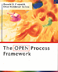 is of course a quote from a software-oriented process book -- though readers may be surprised to find that an "Application" could be a system 'which includes not only sofware but Hardware and Data Components' – both system and software applications are defined, and quite rightly so. Parts of this book are certainly software-specific, dealing briefly with topics as varied as software architecture, programming languages, and metrics. But since the focus of the book is to introduce a process framework, most of it can be seen as a powerful and general analysis of how to develop any complex product. The framework itself is clean, rigorous, and thought out by some of the best minds in the Object-Oriented software world. Firesmith runs a consulting firm and has written widely on object methods, specializing (or is that generalizing?) in project management, Requirements Engineering, system and software architecting, and testing. Henderson-Sellers directs a research centre in Sydney and has many innovations in object methods as well as nine books to his name. Ian Graham (author of other writings on OPEN, but not this book) is a long-time proponent of object methods and a trenchant critic of UML (the Unified Modeling Language) and all that goes with it, so it was with some surprise that I discovered a year or two ago his road-to-Damascus conversion. OPEN still maintains its own rival to UML, the Open Modeling Language or OML, but this is now tactfully redefined as 'a variant of UML' along with some criticism of the 'ambiguous and contradictory semantics' of UML and the hope that UML 2.0 will resolve these problems. OPEN has been in print since 1997 (The OPEN Process Specification, by Ian Graham, Brian Henderson-Sellers and Houman Younessi). The current book is therefore an overview or introduction rather than a full account: but it is complete in its coverage of topics. What is OPEN, and what is a process framework? It is