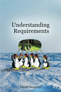 There are around 67 requirements books on the market (and reviewed here), and given that they all have their own takes on the subject, they might be thought to cover every conceivable angle. Gelperin states up front that the old silver bullet, the Waterfall method with its lengthy specifications, has been replaced by another, the Agile method. Requirements look very different, but they're still difficult: he lists 12 reasons, from stakeholders who're unclear or who disagree, to tacit knowledge, misunderstandings and rapid technological change. So why yet another book? Gelperin argues that other books tell the (waterfall) story of elicitation, analysis, specification, and validation, but omit stakeholder understanding, demonstrations that the developer understands too, quality attributes (in which he includes goal definitions), and requirements risk analysis, among other things. He cheerfully admits that the book is not for beginners, and does not list analysis techniques. Instead, it focuses on how experienced practitioners can develop an understanding of a project's requirements.