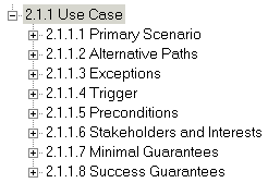 Alistair Cockburn extended Jacobson's Use Case concept by identifying the use case's name as a functional goal, and by documenting a suggested structure for use cases, to include a primary or main success scenario, as well as exception (he called them 'extension') scenarios to handle undesired events (Cockburn 2001). This made it clear that use cases documented system behaviour desired by people (or possibly other intelligent agents) playing specific system roles. Cockburn also proposed a range of templates for use cases ranging from sketchy to 'fully-dressed', effectively converting the use case into a complete framework for documenting functional requirements (Figure 4).